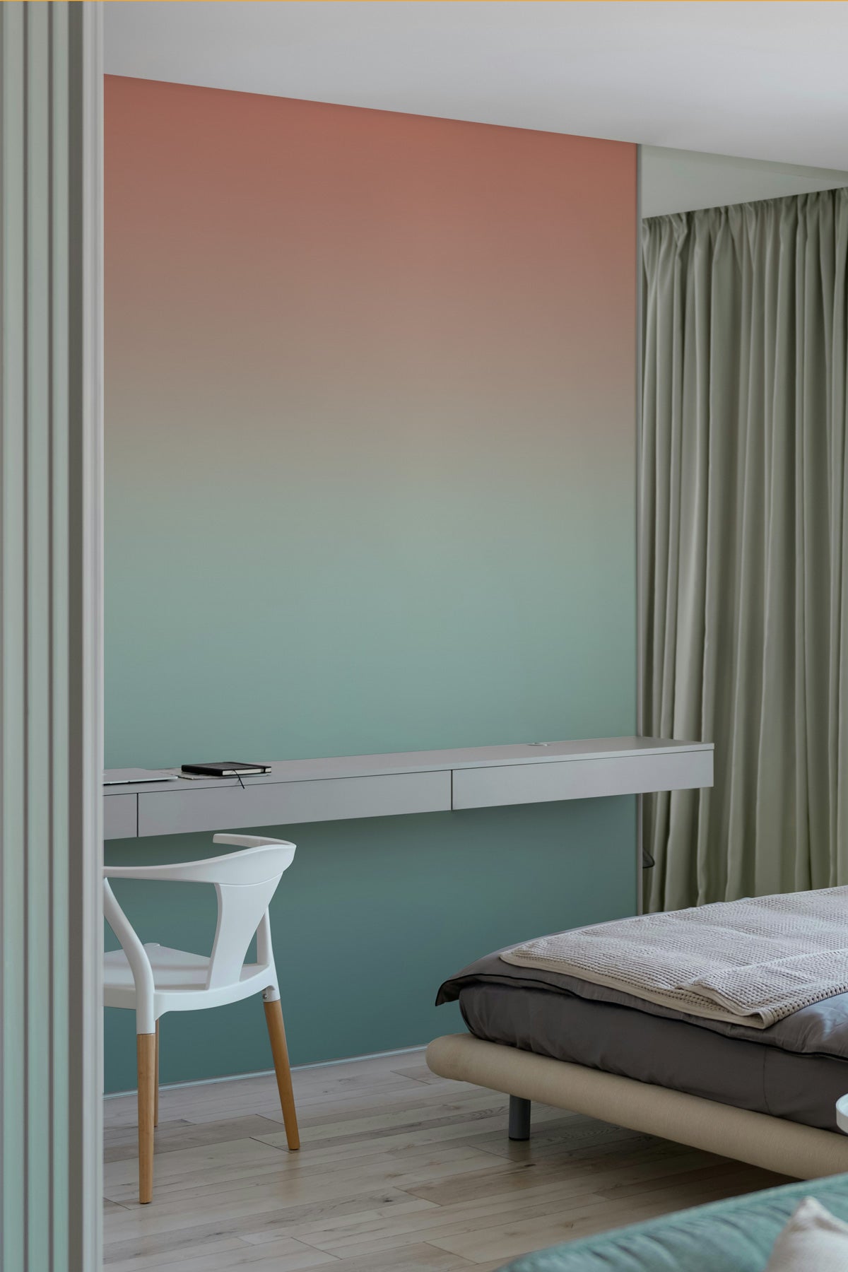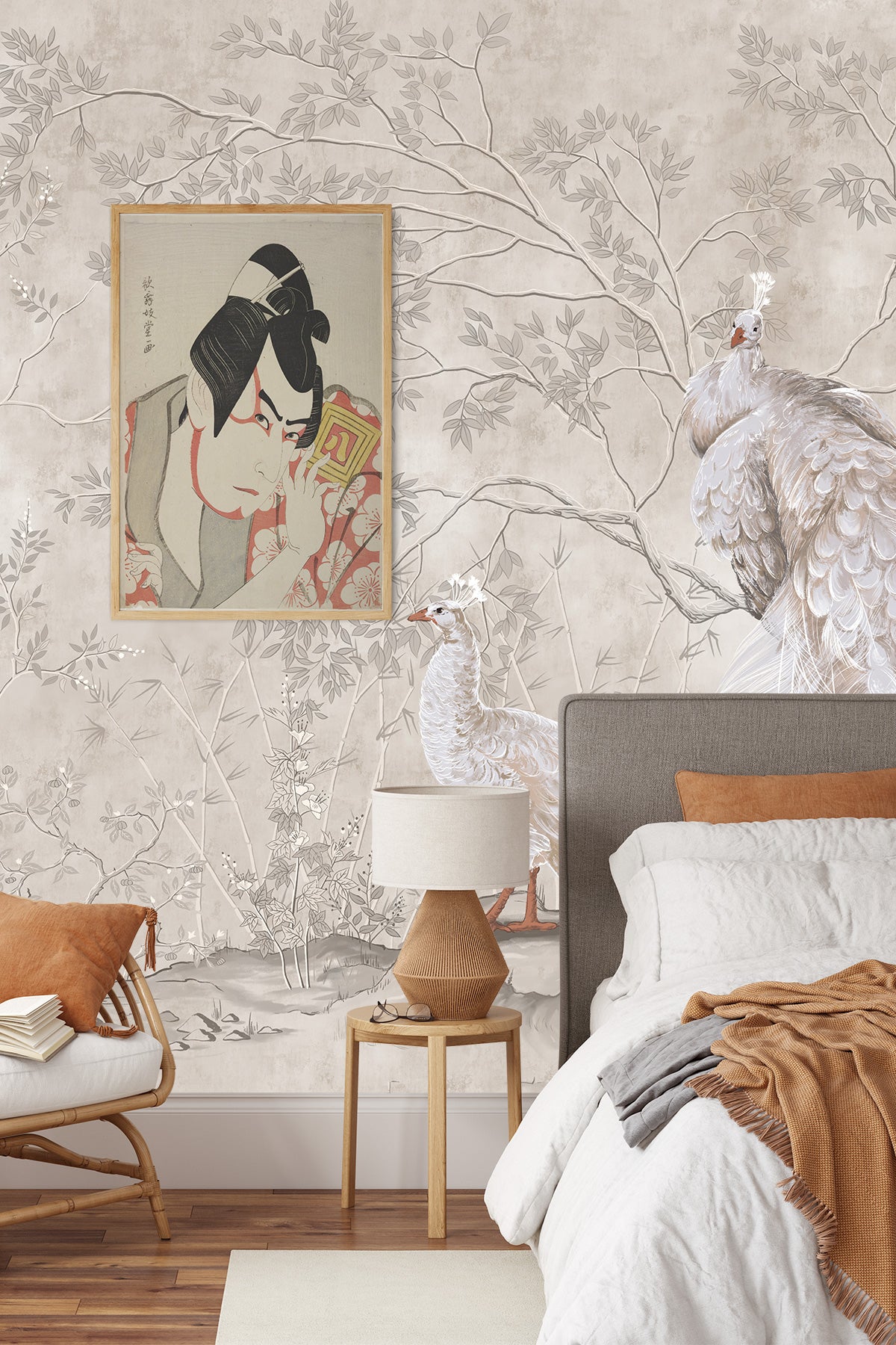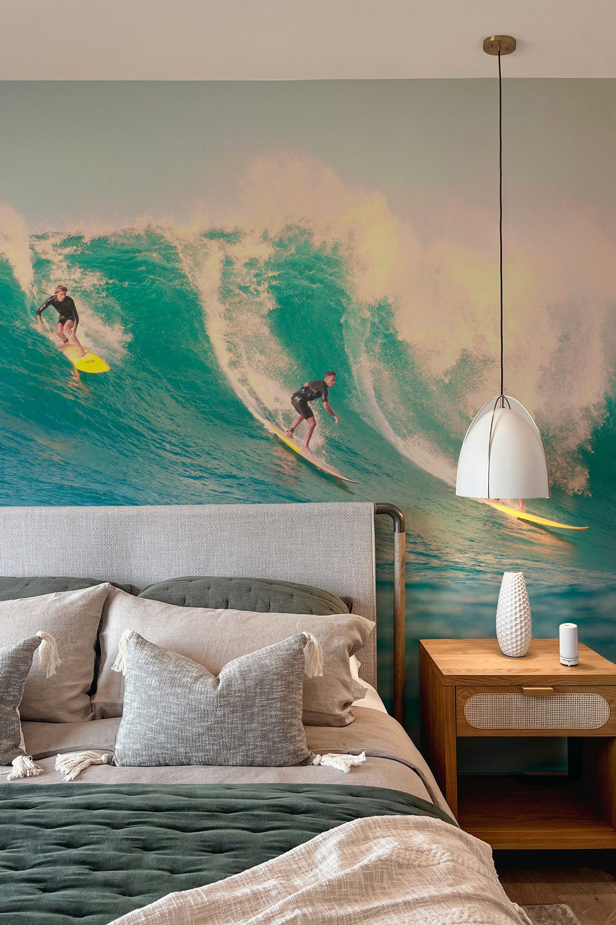 Placement idea: Install a mural behind the bed to replace a traditional headboard and anchor the room visually.