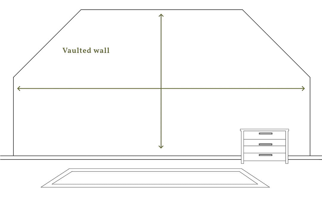 Just like with a slanted wall, you will need to take the measurements at the longest and widest parts of the wall, ignoring the 2 slants or curvature (in the case of an arched wall).