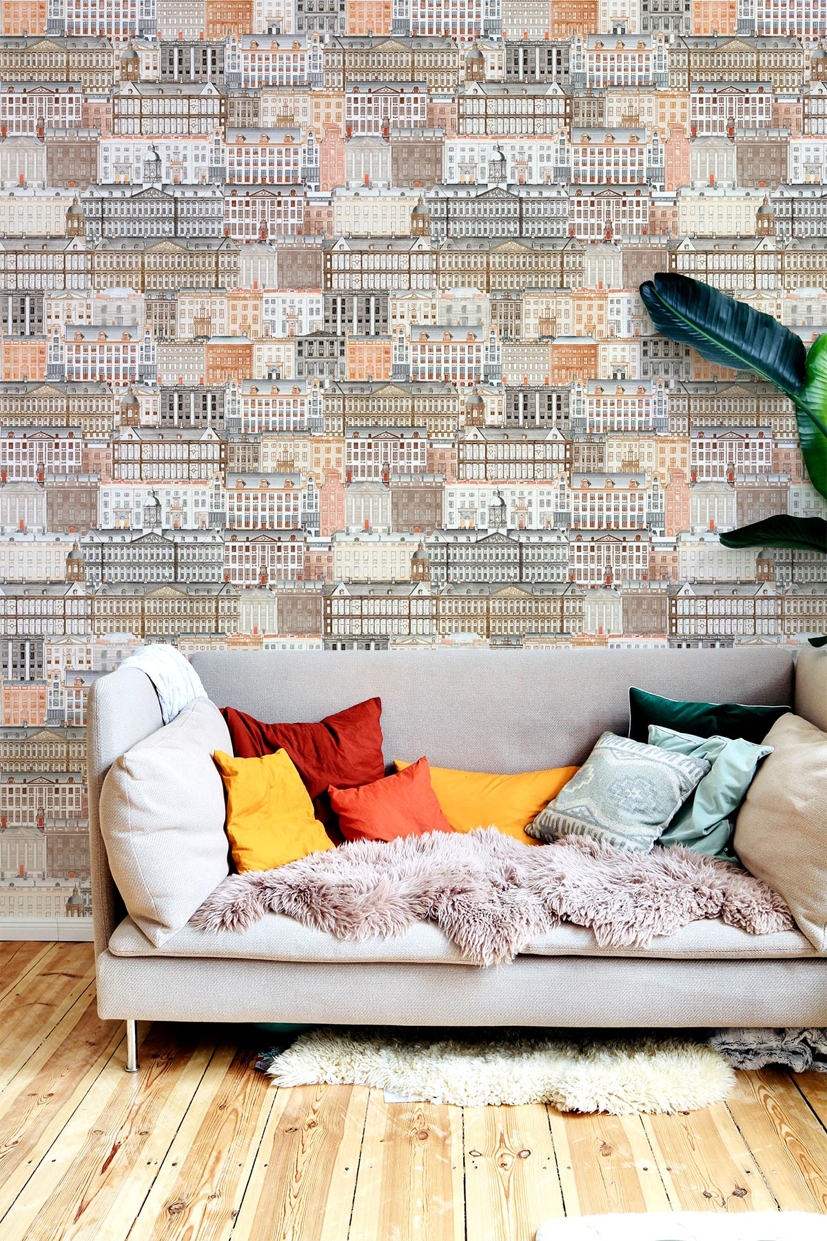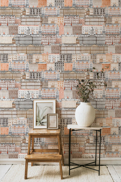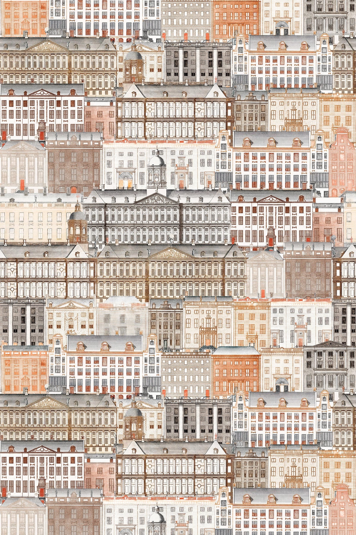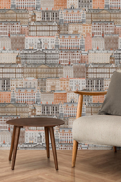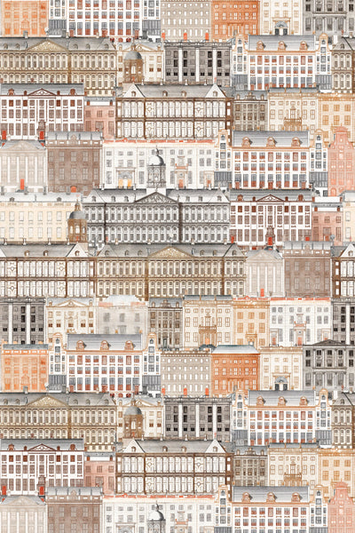 "Amsterdam" is a charming wallpaper featuring a vintage pattern of hand-drawn buildings from the iconic city. Each building is illustrated with delicate line work, capturing the unique architecture and historic charm of Amsterdam's streets. The design evokes a sense of nostalgia, transporting you to a world of quaint facades and timeless urban beauty. "Amsterdam" transforms your walls into a picturesque cityscape, where the intricate details of old-world buildings bring a sense of history, culture, and artistic warmth to any space.