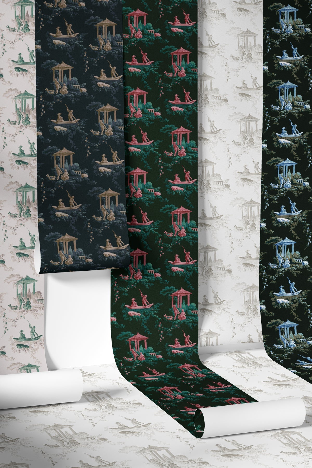 "Ardenne" is a quintessentially French wallpaper featuring a hand-painted toile pattern that captures the romance of two lovers in a pastoral setting. With delicate, storybook scenes arranged across the design, each vignette feels like a moment paused in time, evoking the elegance and charm of vintage French decor. "Ardenne" brings a sense of nostalgia and timeless beauty to your walls, perfect for adding a soft, romantic ambiance that celebrates the art of storytelling through design.