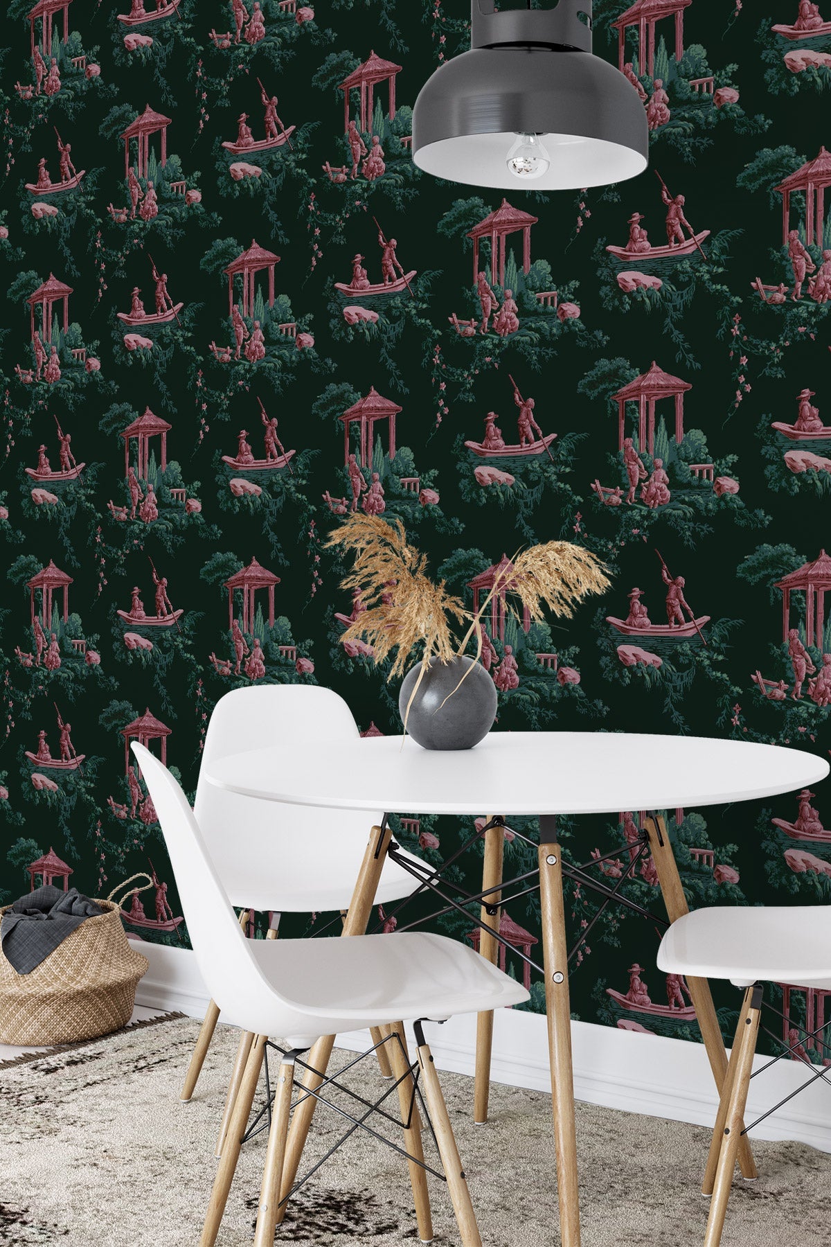 "Ardenne" is a quintessentially French wallpaper featuring a hand-painted toile pattern that captures the romance of two lovers in a pastoral setting. With delicate, storybook scenes arranged across the design, each vignette feels like a moment paused in time, evoking the elegance and charm of vintage French decor. "Ardenne" brings a sense of nostalgia and timeless beauty to your walls, perfect for adding a soft, romantic ambiance that celebrates the art of storytelling through design.