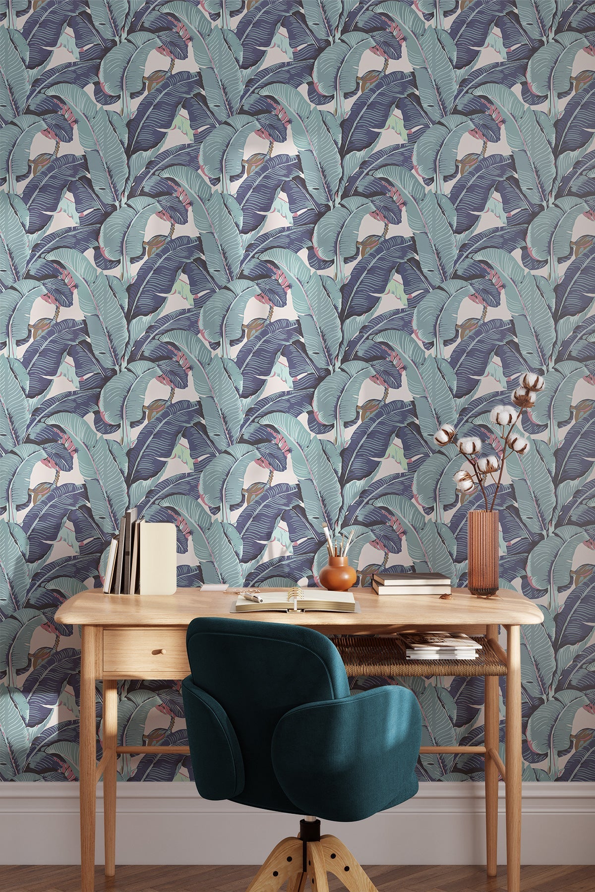 Capture the essence of Beverly Hills luxury with this wallpaper inspired by the renowned banana leaves pattern, in shades of blue. The meticulously recreated design pays homage to the timeless elegance that has gracefully adorned the walls of the famous hotel for decades. Iconic, sophisticated and ultimately timeless.