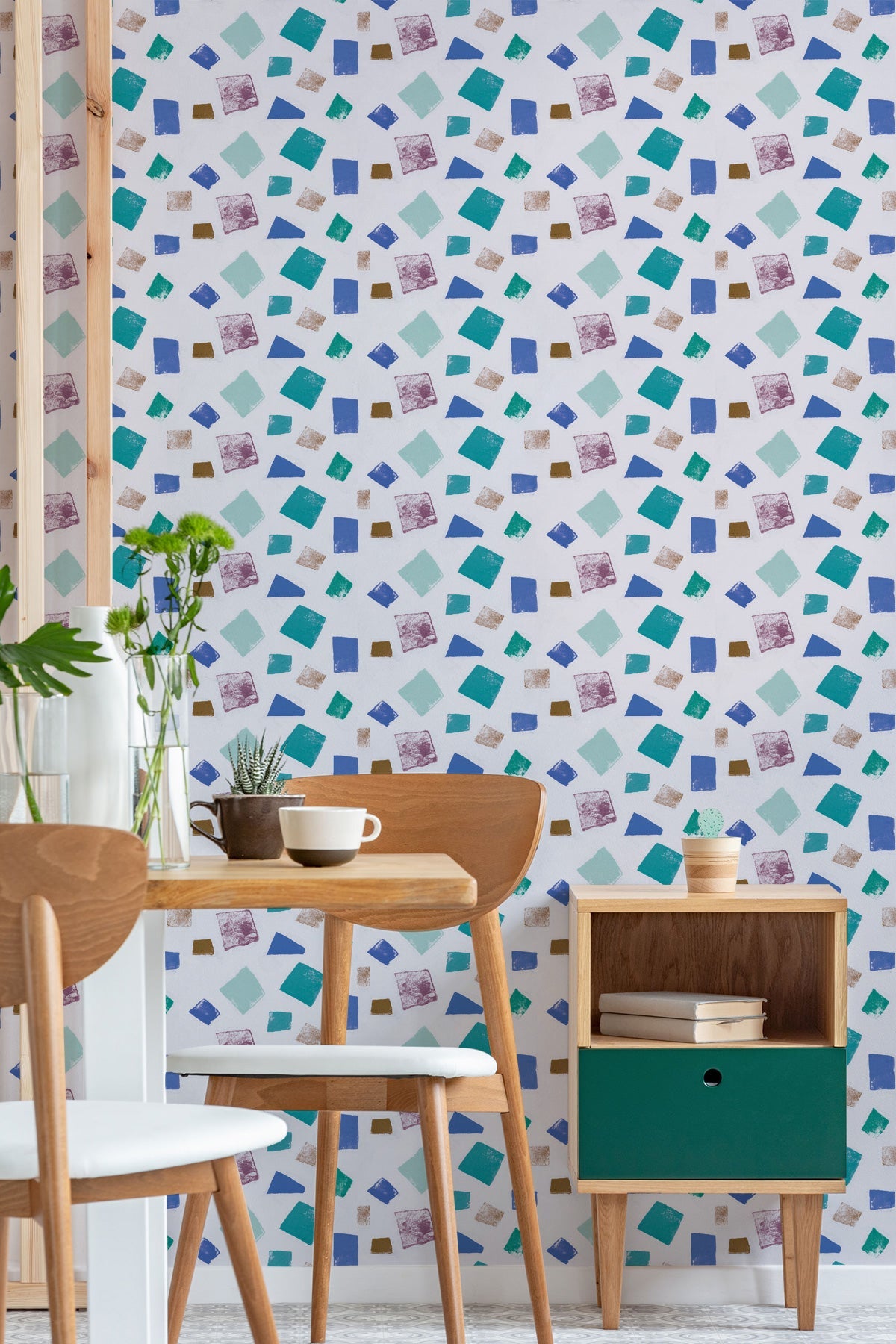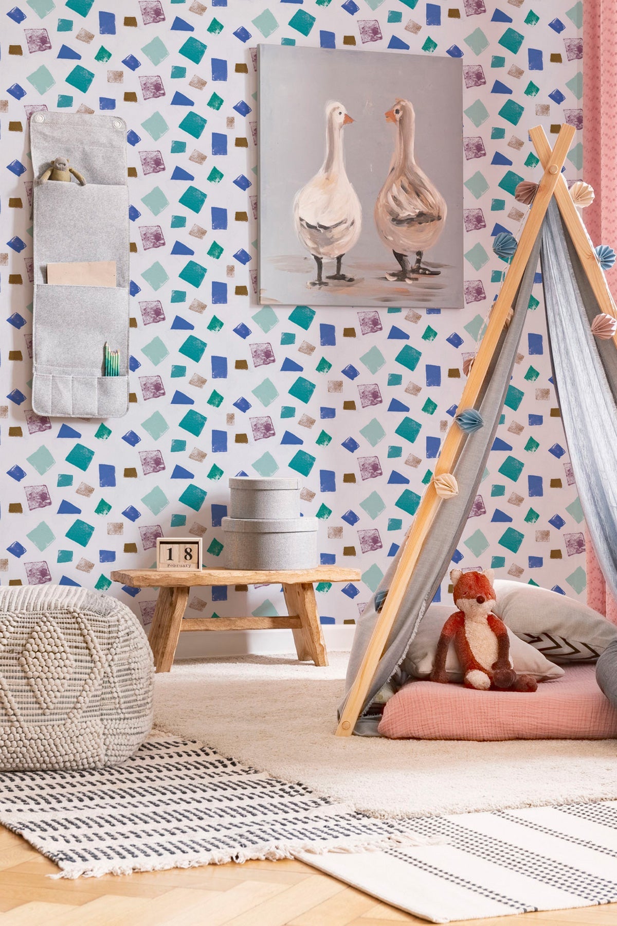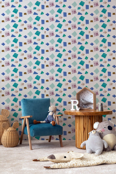"Block Party" is a vibrant and playful wallpaper featuring a lively pattern of randomly sized block shapes scattered and rotated across the design. Bursting with bold colors and whimsical geometry, it feels like a fun, carefree celebration on your walls. Perfect for a kids' room or playroom, "Block Party" sparks imagination and joy, creating a space where creativity can roam free.