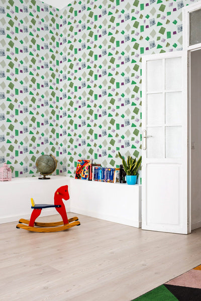 "Block Party" is a vibrant and playful wallpaper featuring a lively pattern of randomly sized block shapes scattered and rotated across the design. Bursting with bold colors and whimsical geometry, it feels like a fun, carefree celebration on your walls. Perfect for a kids' room or playroom, "Block Party" sparks imagination and joy, creating a space where creativity can roam free.