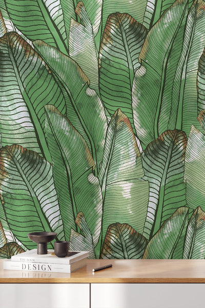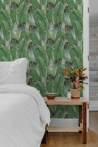 Our Borneo Wallpaper in green is a tribute to the lush landscapes of Borneo, encapsulating the beauty of hand-drawn palm leaves in a style reminiscent of classic illustrations. Immerse your space in the tranquility of tropical elegance with this meticulously designed wallpaper, drawing inspiration from nature's masterpieces.