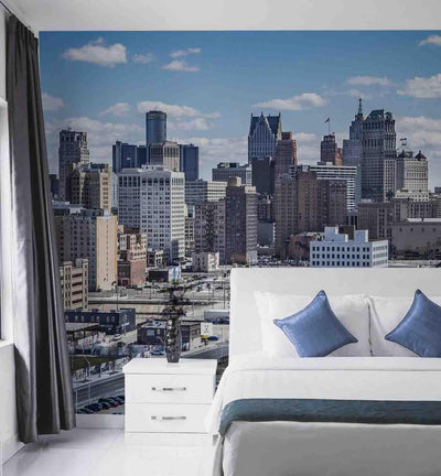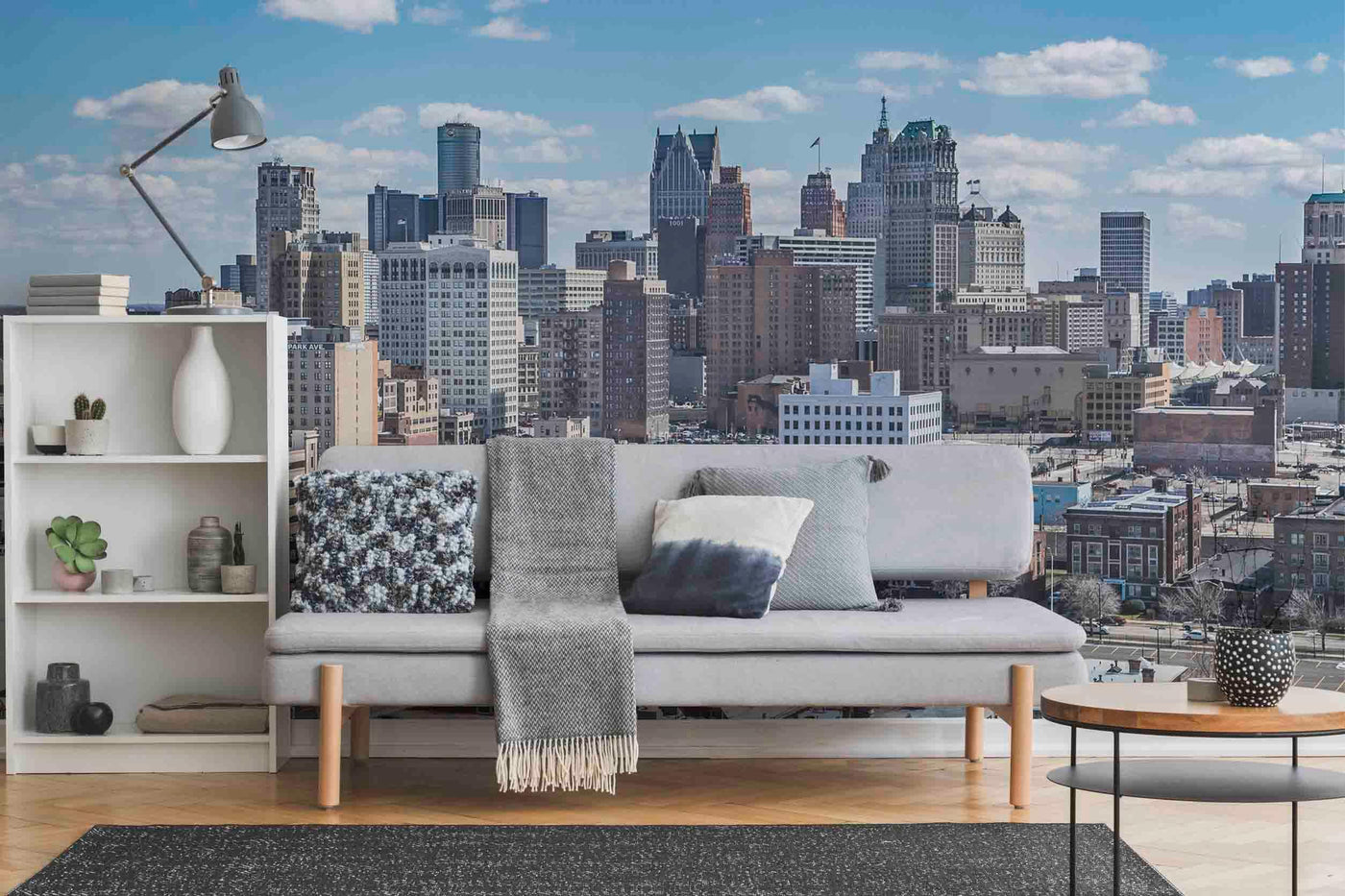 Bring Detroits booming downtown district into any room of your office or home with the Detroit Skyline Wallpaper Mural from Eazywallz.com. This classic view showcases the architectural beauty prevalent in this great city. Enhance any room in your house with this photo mural.