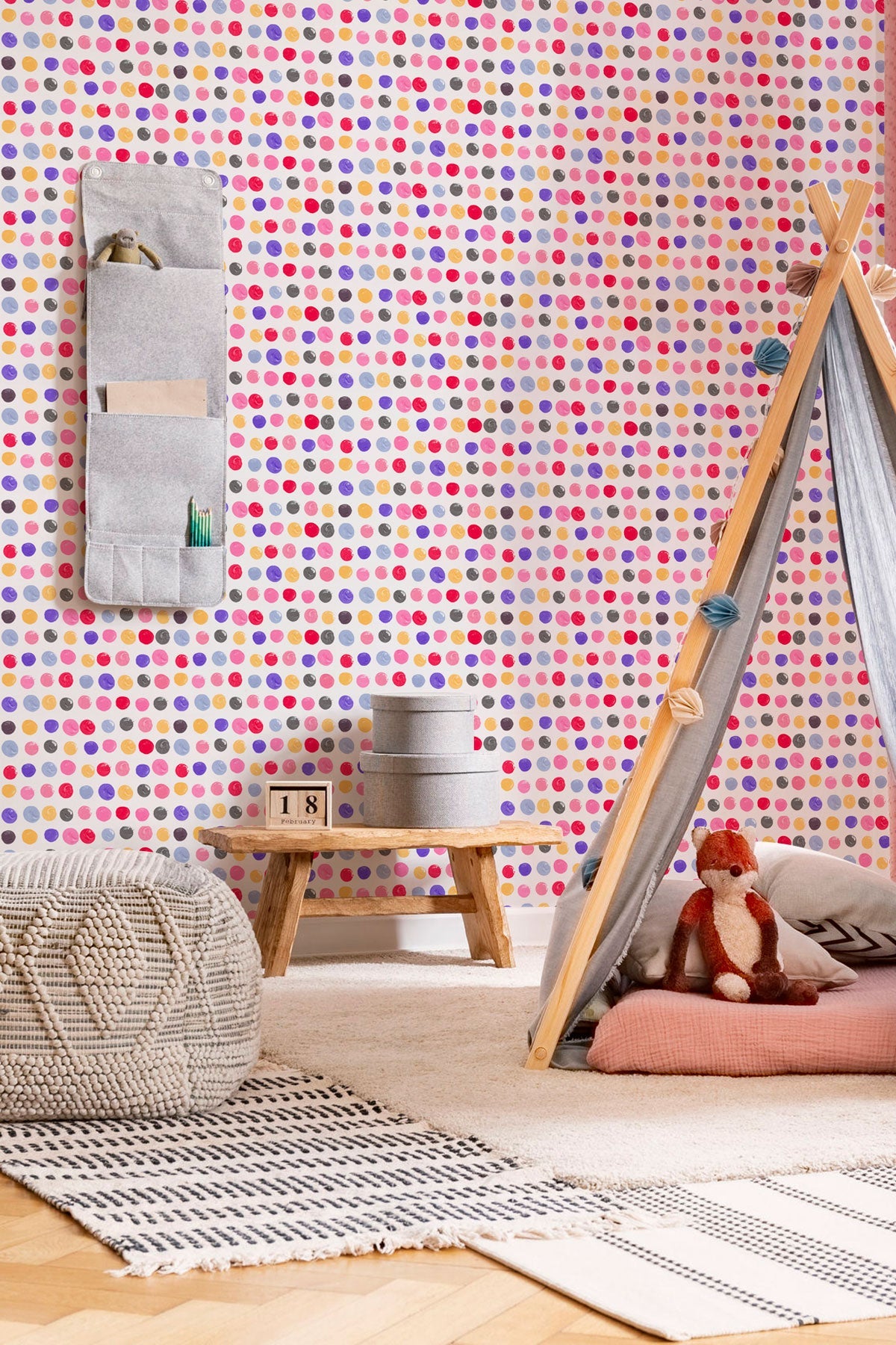 Introducing "Dot Party / Red," a vibrant wallpaper featuring playful polka dots in a delightful gouache style. This design brings a sense of joy and whimsy to any space, with each red dot bursting with artistic flair and personality. Perfect for a child's bedroom, playroom, or a fun accent wall in a dining area, "Dot Party / Red" transforms your walls into a lively canvas of fun and creativity. Elevate your home with the engaging charm of "Dot Party / Red," where polka dots create a festive dance of color and style.
