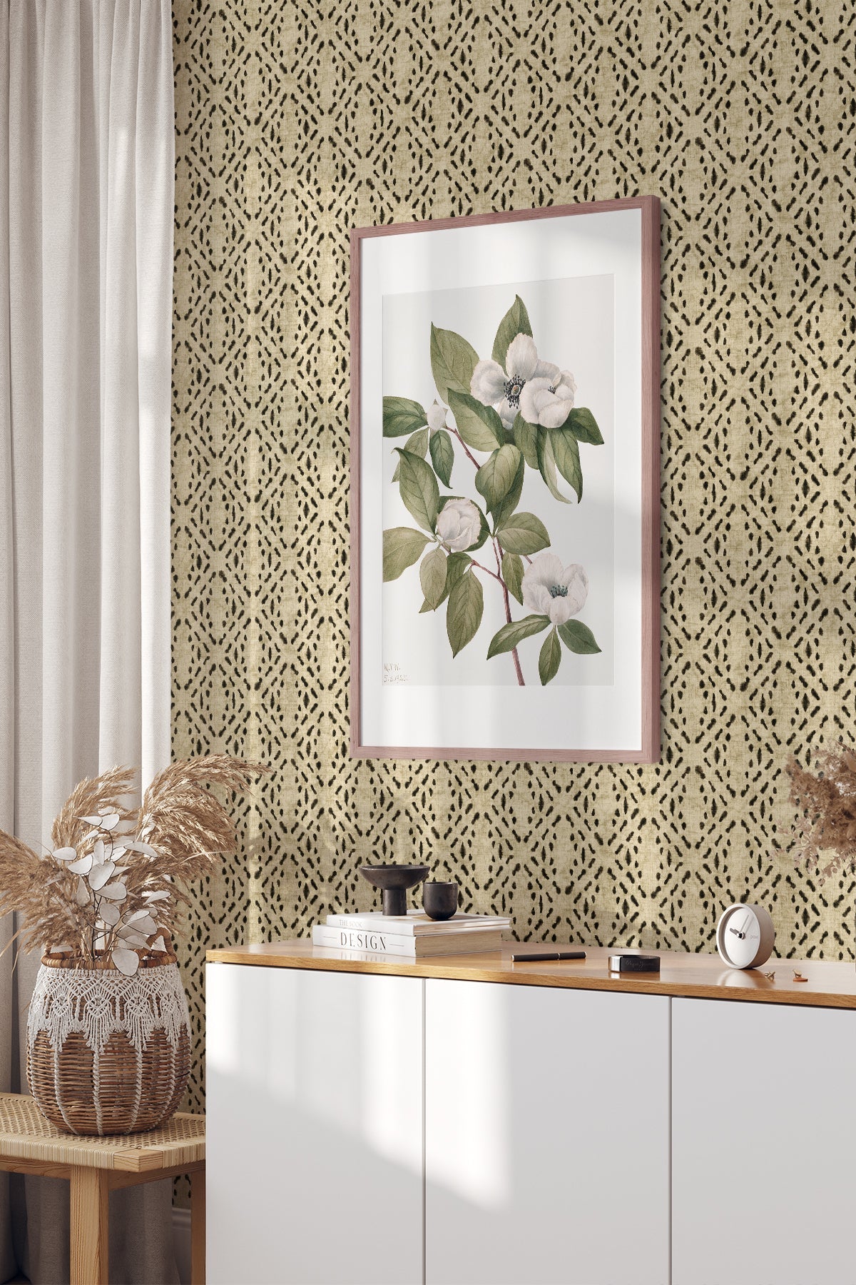 "Ethnic Tie Dye" is a subtle wallpaper featuring hand-drawn diamond patterns set against a rich, tie-dye background. The geometric shapes create an energetic, ethnic-inspired feel that brings a sense of adventure and cultural depth to your space. With its handcrafted look and bold, dynamic design, "Ethnic Tie Dye" turns your walls into a tapestry of artistic expression, perfect for adding a touch of bohemian flair and vibrant personality to any room.