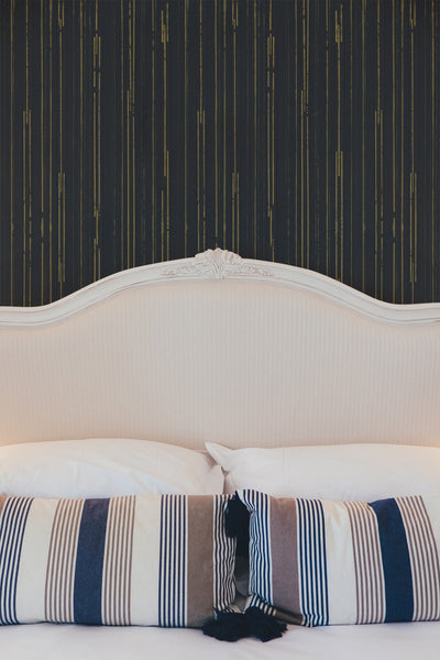 "Follow The White Rabbit" is an exceptional wallpaper inspired by the iconic falling binary code from The Matrix. This unique pattern features hand-painted vertical lines, some cut off in unpredictable ways, creating a sense of beautiful randomness. The design captures a modern, digital aesthetic while maintaining an artistic, handcrafted feel. One of our favorite wallpapers, "Follow The White Rabbit" turns your walls into a captivating, dynamic visual experience, blending order and chaos in a way that feels both futuristic and timeless. Perfect for those looking to make a bold, thought-provoking statement in any space.