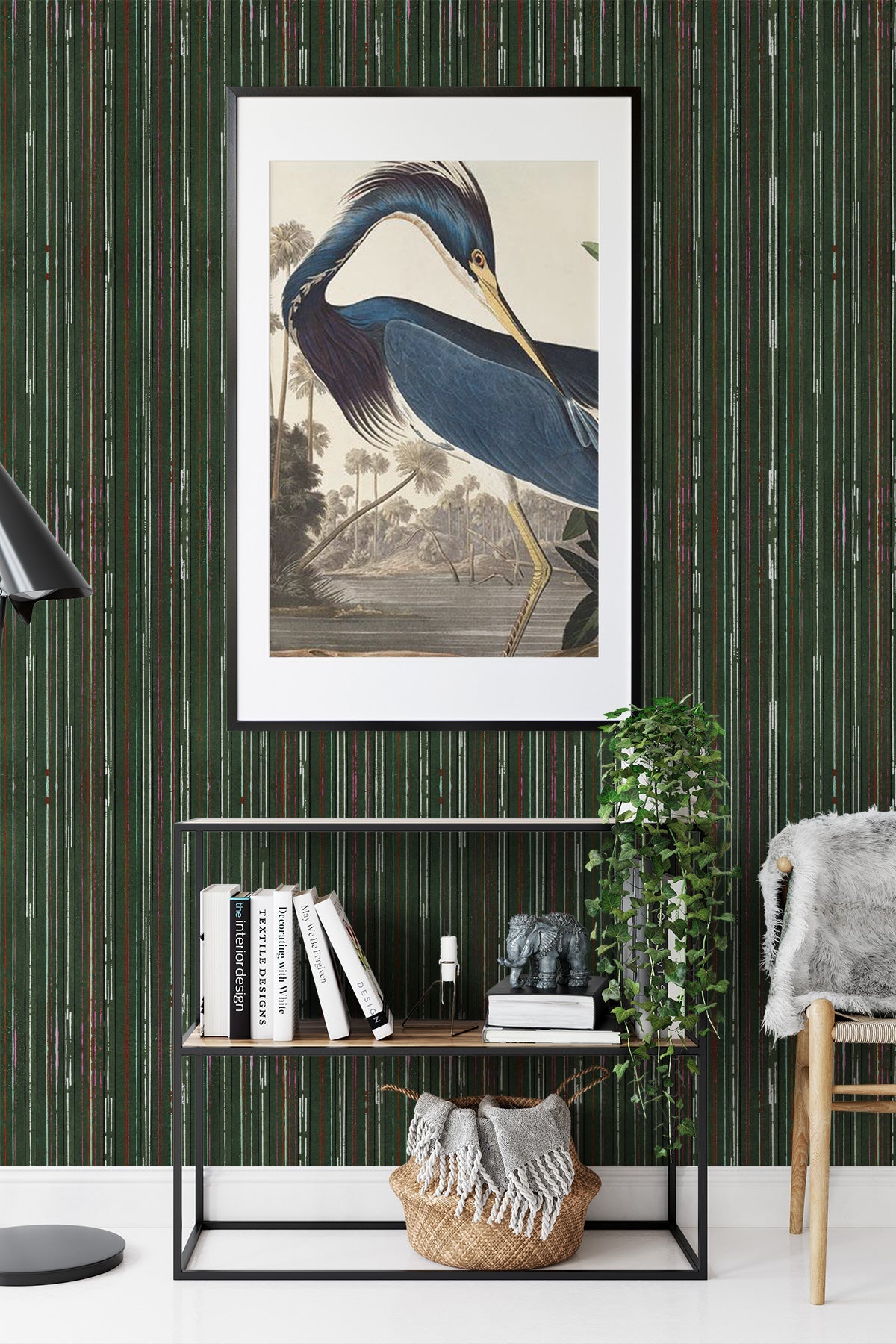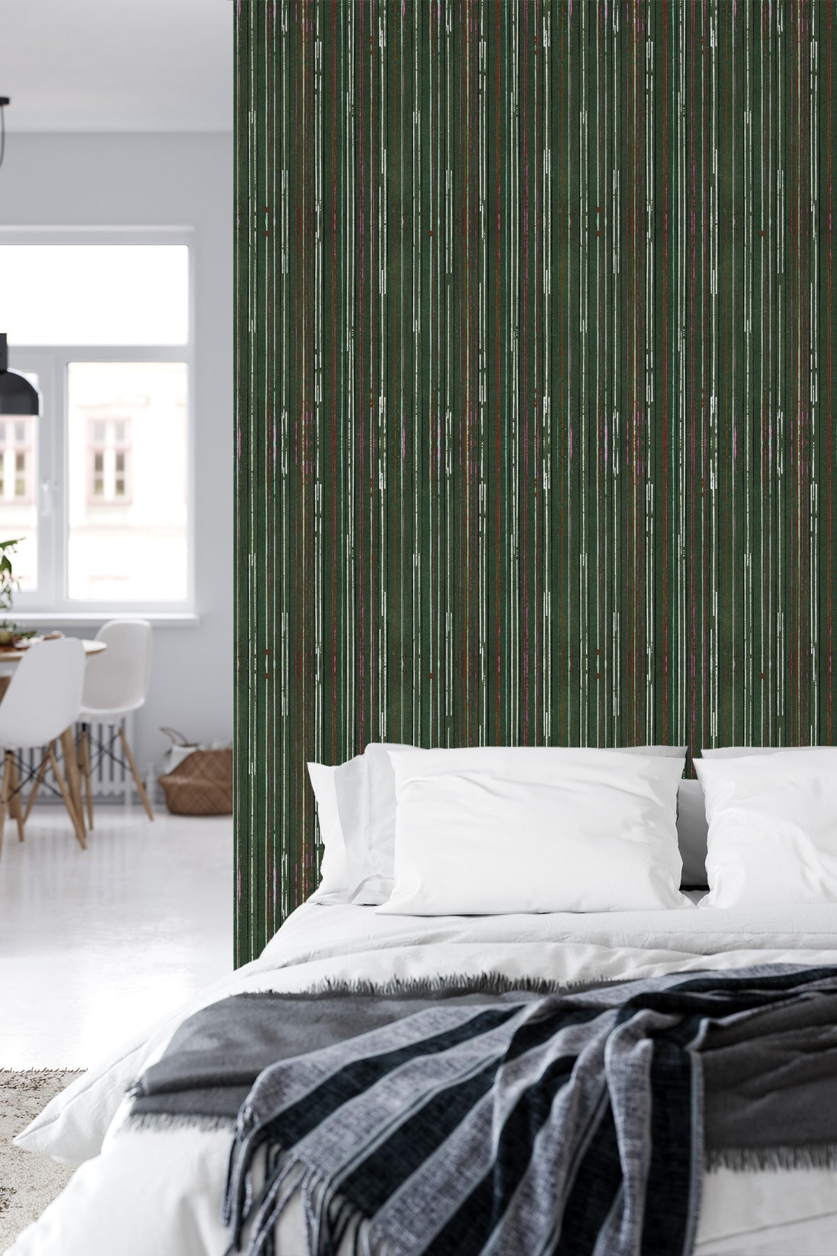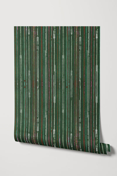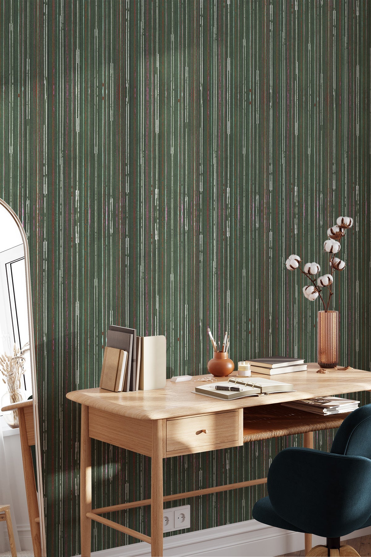 "Follow The White Rabbit" is an exceptional wallpaper inspired by the iconic falling binary code from The Matrix. This unique pattern features hand-painted vertical lines, some cut off in unpredictable ways, creating a sense of beautiful randomness. The design captures a modern, digital aesthetic while maintaining an artistic, handcrafted feel. One of our favorite wallpapers, "Follow The White Rabbit" turns your walls into a captivating, dynamic visual experience, blending order and chaos in a way that feels both futuristic and timeless. Perfect for those looking to make a bold, thought-provoking statement in any space.
