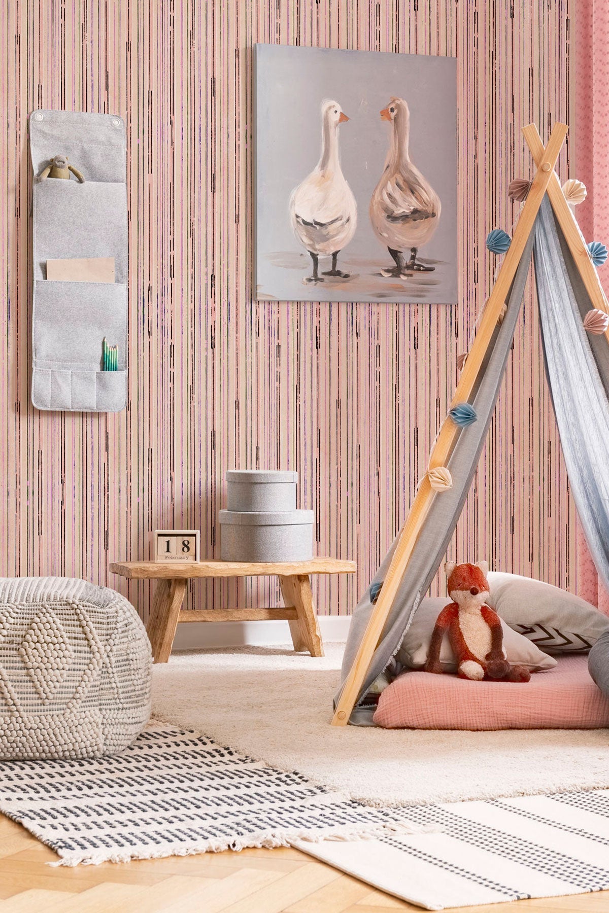"Follow The White Rabbit" is an exceptional wallpaper inspired by the iconic falling binary code from The Matrix. This unique pattern features hand-painted vertical lines, some cut off in unpredictable ways, creating a sense of beautiful randomness. The design captures a modern, digital aesthetic while maintaining an artistic, handcrafted feel. One of our favorite wallpapers, "Follow The White Rabbit" turns your walls into a captivating, dynamic visual experience, blending order and chaos in a way that feels both futuristic and timeless. Perfect for those looking to make a bold, thought-provoking statement in any space.