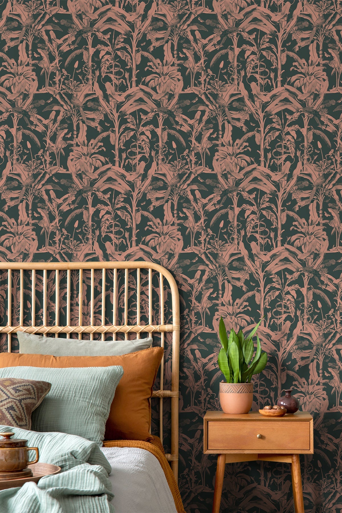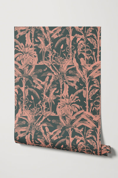 Our Guanacaste Wallpaper is a whimsical blend of banana trees, parrots, and snakes, all brought to life in a charming vintage hand-drawn style. This wallpaper represents a journey into the heart of nature's wonders with a touch of retro allure. Your walls become a canvas for a playful dance of tropical elements, where every stroke tells a story. The vintage hand-drawn aesthetic adds a nostalgic charm, making each element feel like a timeless illustration, while the duotone palette evokes sophistication. Let your walls tell a tale of tropical nostalgia with this unique and captivating wallpaper.