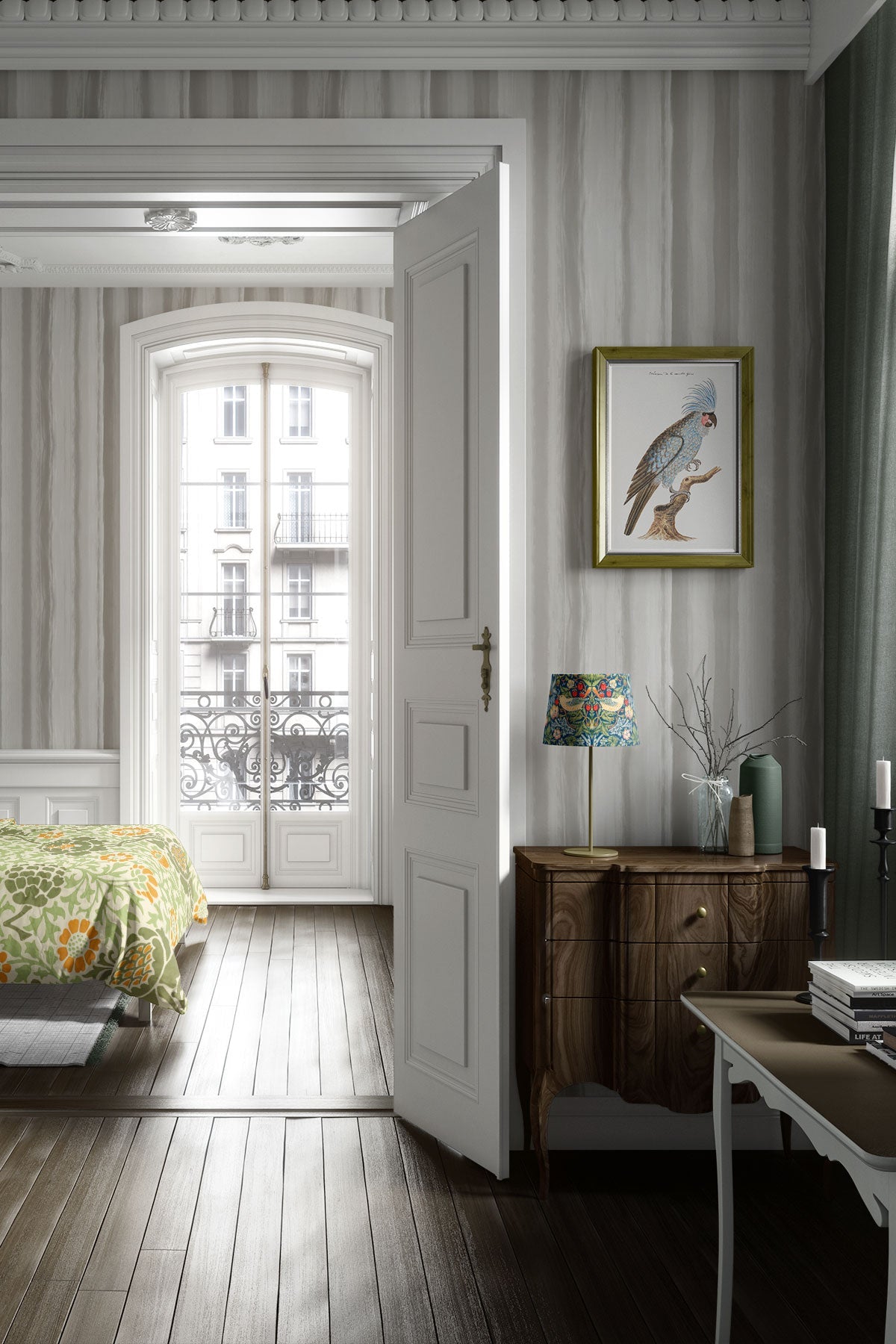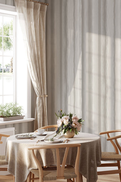 "Halcyon" is a luxurious wallpaper featuring elegant vertical lines in a sophisticated watercolor style. This design brings a touch of refined artistry to any space, making it perfect for an upscale living room, serene bedroom, or chic dining area. The gentle beige watercolor lines create a soothing and elegant visual, transforming your walls into a canvas of timeless beauty. Elevate your home with the unique charm of "Halcyon," where the fusion of vertical lines and watercolor elegance adds a graceful burst of luxury and creativity to your decor.