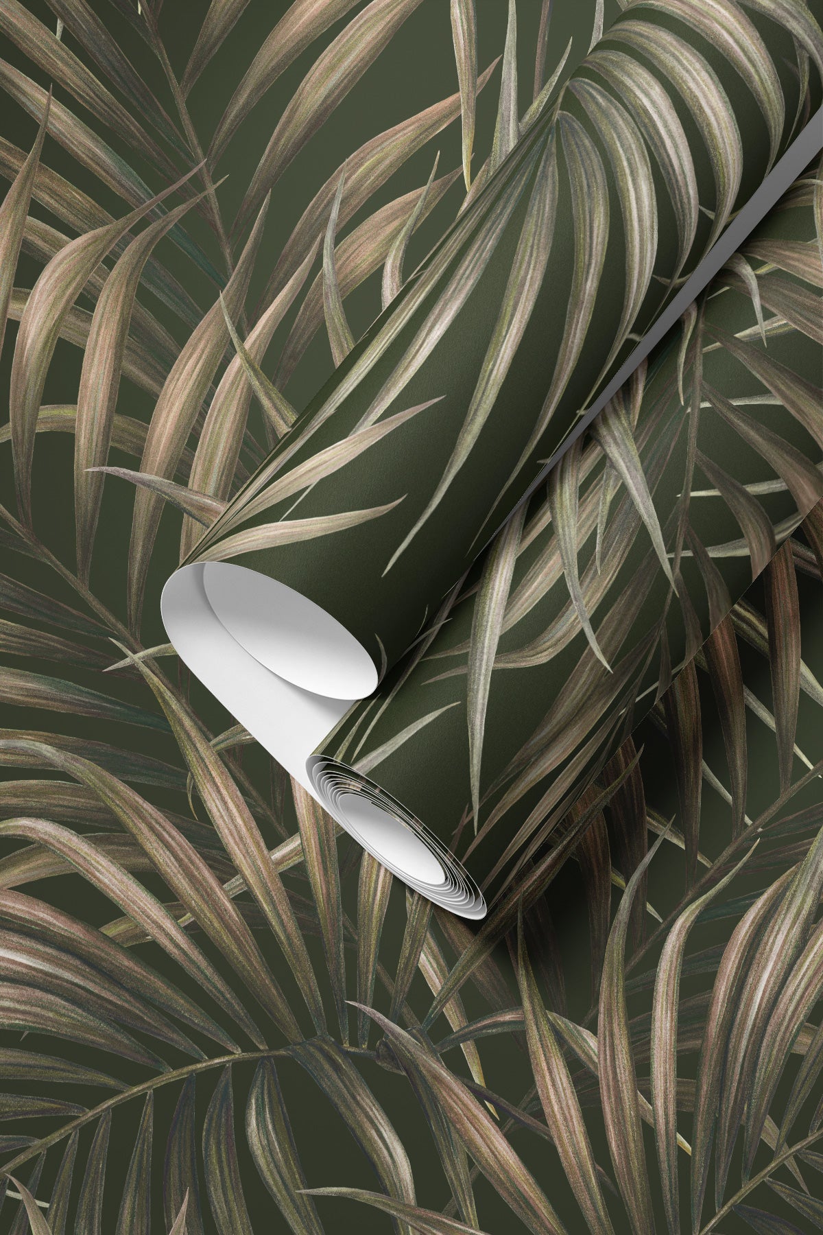 Our Kailani Olive Wallpaper is a breath of fresh air for your walls that captures the essence of tropical tranquility in a contemporary design. Adorned with a vibrant tableau of lush green palm leaves against a serene olive backdrop, this wallpaper is a visual retreat that brings the rejuvenating ambiance of a tropical paradise into your home. The Kailani Olive Wallpaper features a crisp pattern of verdant palm leaves set against a backdrop of soothing dark green, creating a harmonious and invigorating visual experience.