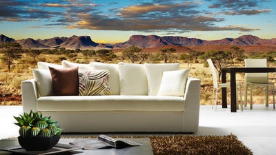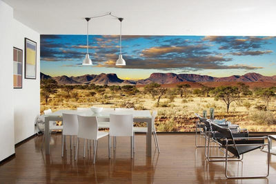 The bright blues and scorched browns collide to create a beautiful contrast in the Kalahari Desert wall mural from Eazywallz.com. This wallpaper photo is a great way to add lively color and excitement in any room in the house. This photo mural makes any room seem larger.
