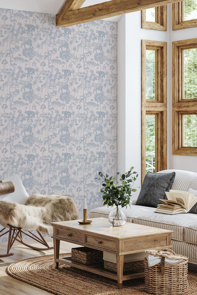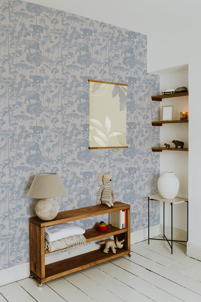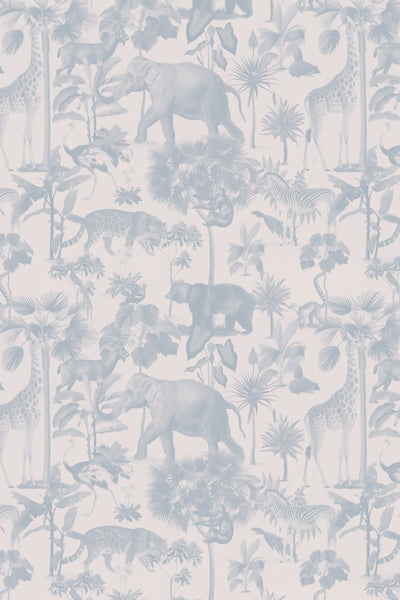 Step into the enchanting menagerie of our Lush Fauna Wallpaper – a vintage hand-drawn wallpaper featuring an array of charismatic animals, including bears, giraffes, zebras, elephants, and a lush assortment of tropical plants. It echoes a nostalgic journey into a whimsical wilderness where each creature and botanical element is a character in a timeless story. The hand-drawn aesthetic adds a touch of old-world charm, creating a wallpaper that invites you to explore the intricate details of this elegant and harmonious natural haven.
