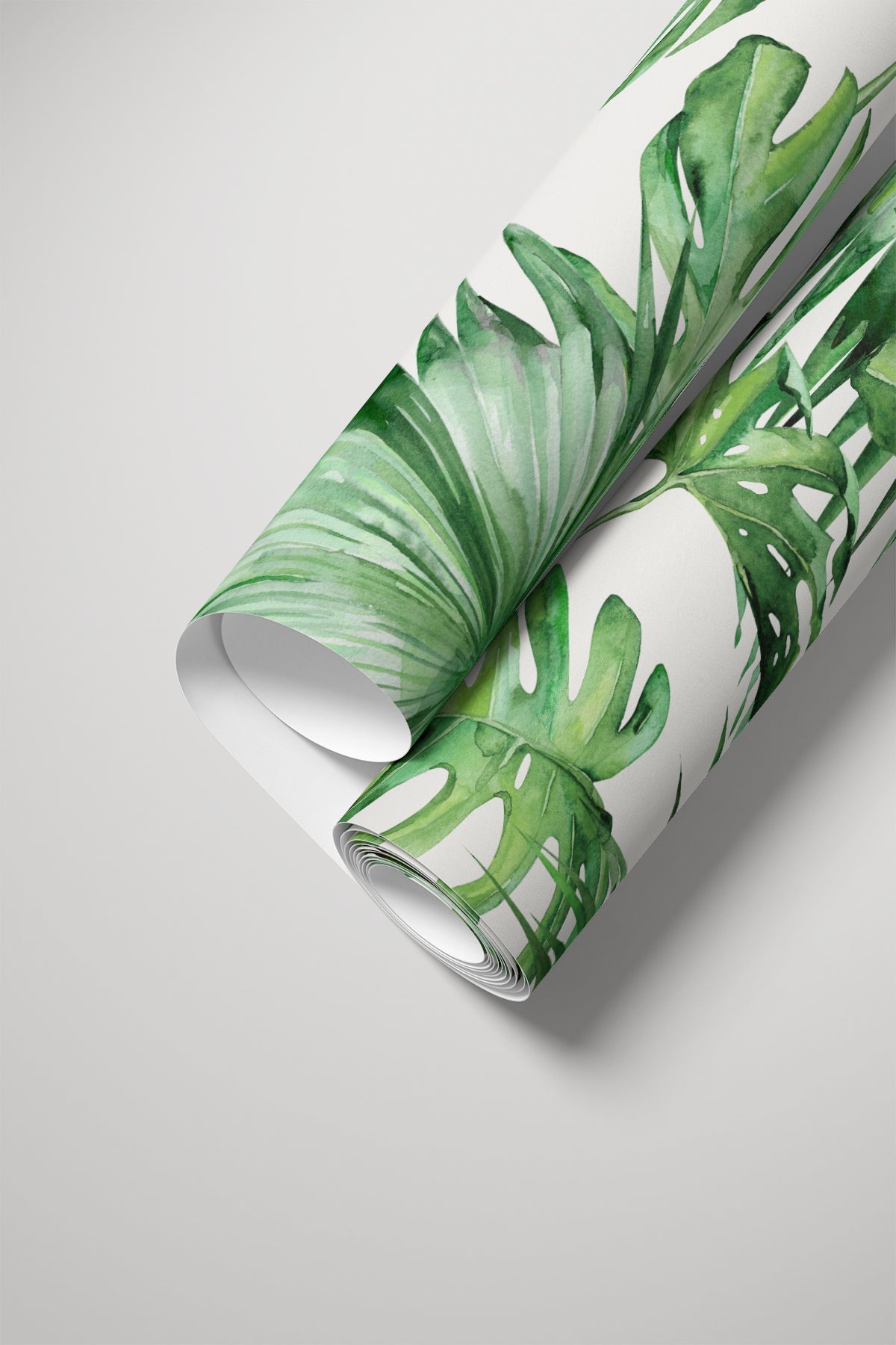 Our Madeira Watercolor Wallpaper is a masterpiece that seamlessly blends artistry and nature to adorn your space with a touch of tropical elegance. It showcases large palm leaves delicately rendered in watercolor. The soft, flowing brushstrokes capture the essence of nature's beauty, infusing your walls with a tranquil and sophisticated charm. With its captivating green hues and intricate details, this wallpaper adds a subtle yet impactful touch to your decor.