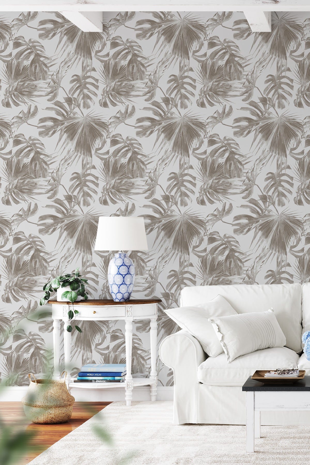 Our Madeira Watercolor Wallpaper is a masterpiece that seamlessly blends artistry and nature to adorn your space with a touch of tropical elegance. It showcases large palm leaves delicately rendered in watercolor. The soft, flowing brushstrokes capture the essence of nature's beauty, infusing your walls with a tranquil and sophisticated charm. With its captivating green hues and intricate details, this wallpaper adds a subtle yet impactful touch to your decor.