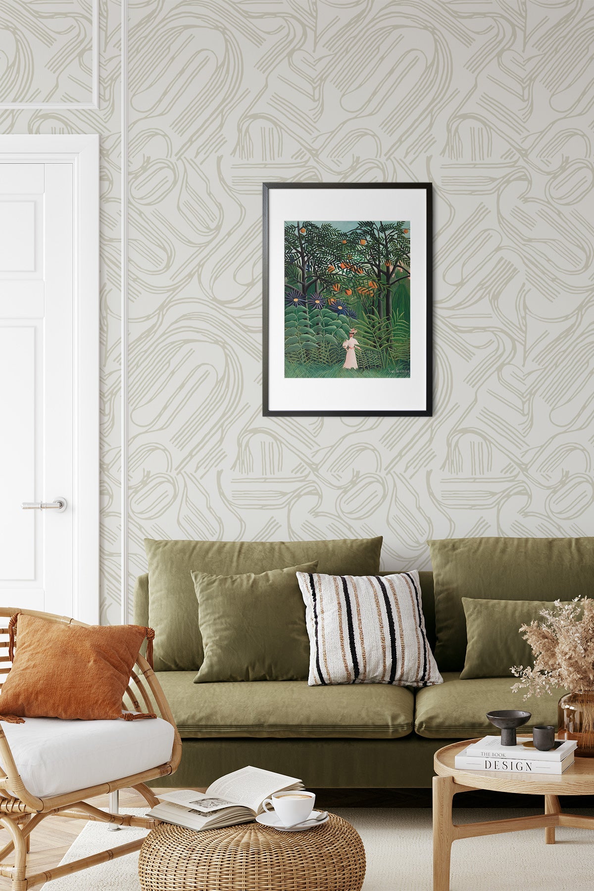 Introducing "Mimas," where hand-drawn lines weave together in an intricate dance of geometric precision and organic flow. Inspired by the art of labyrinths, this design embraces the beauty of complexity and the allure of discovery. The maze-like pattern, with its deliberate imperfections, invites the eye to wander, creating a sense of movement and depth. "Mimas" transforms your space into a canvas of thoughtful design, where the subtle interplay of lines evokes both structure and spontaneity. Rooted in the artistry of handcrafted detail, this pattern brings a timeless yet modern elegance to your walls.