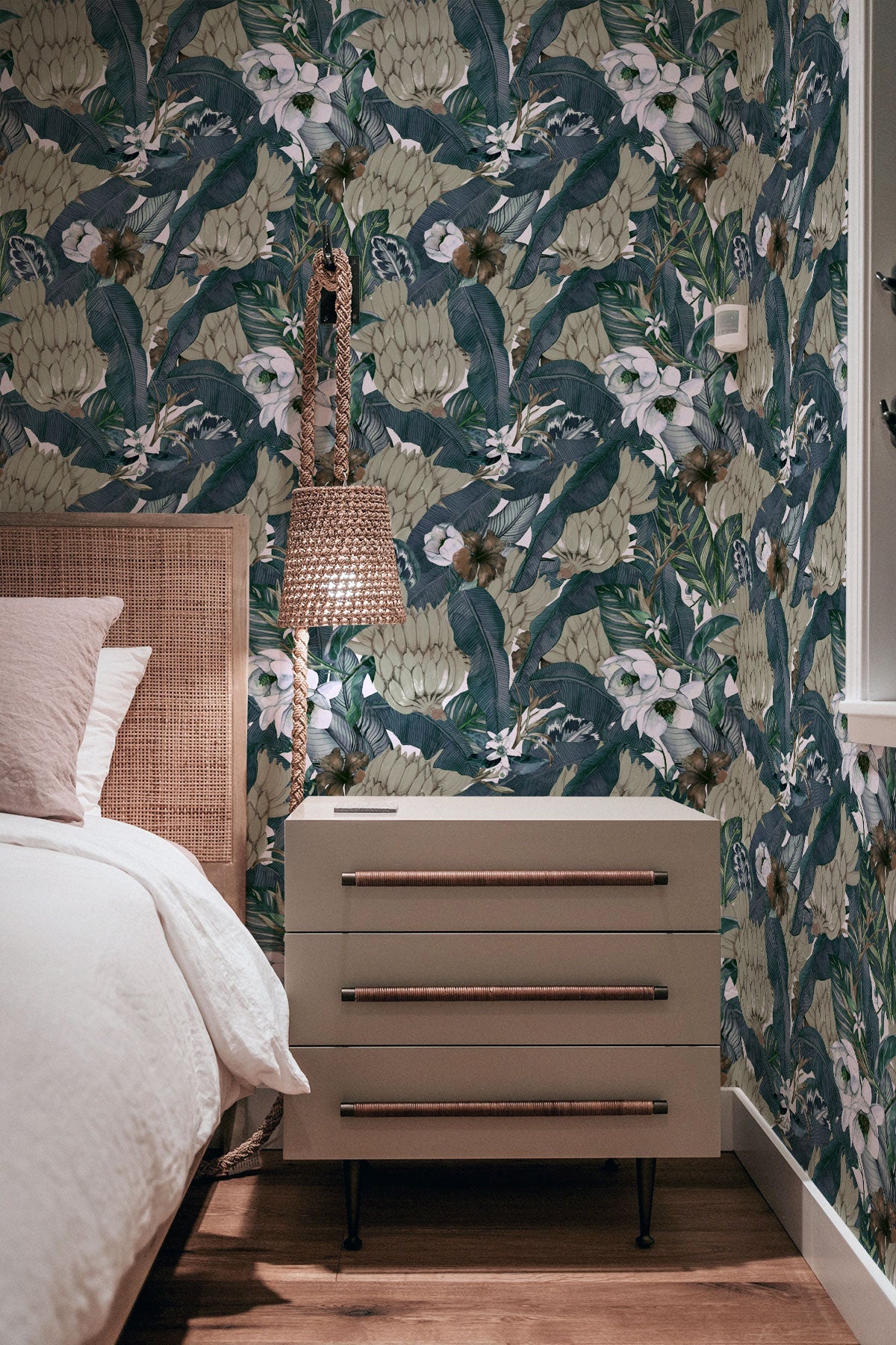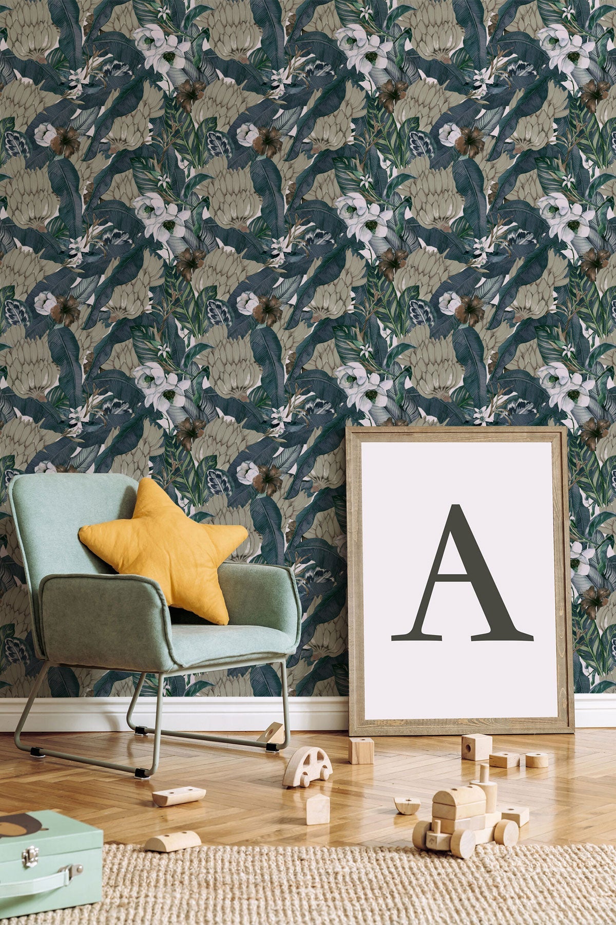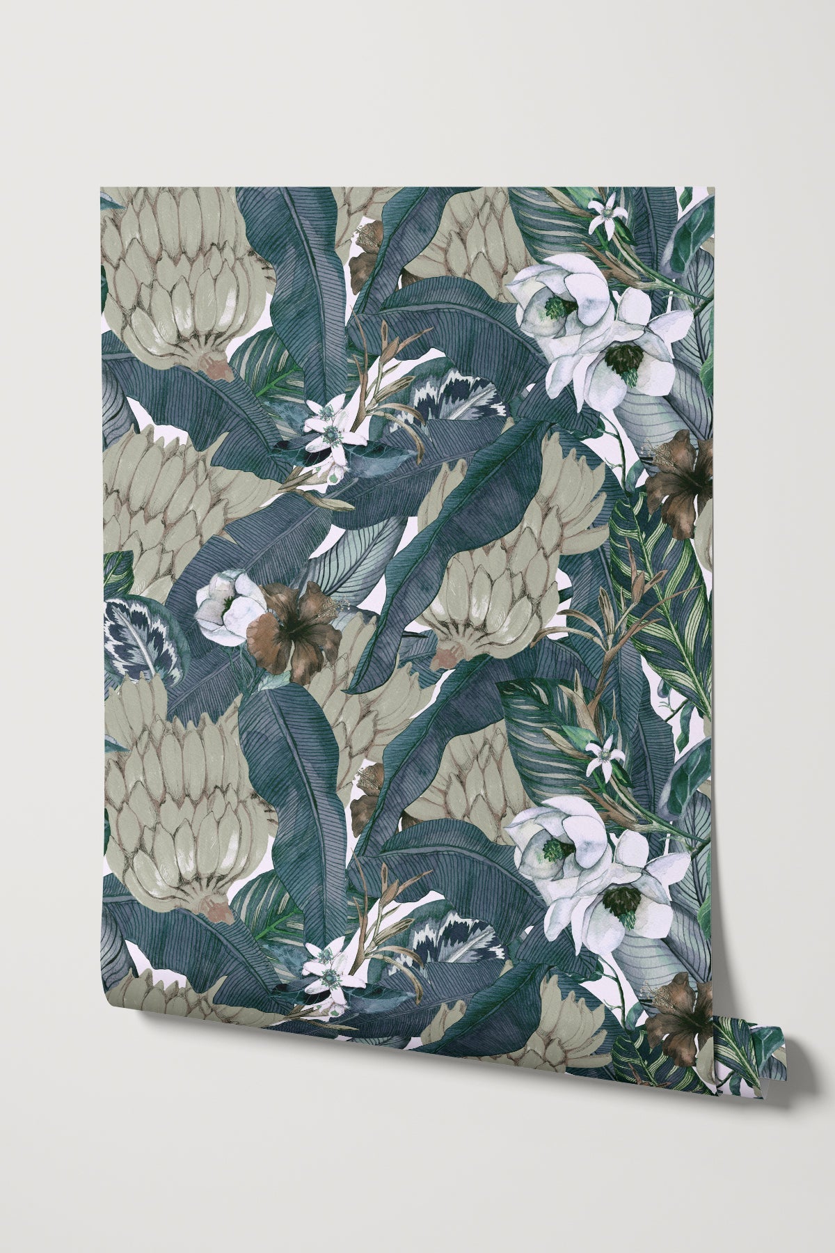 Bananas, banana leaves and tropical flowers are meticulously rendered in the fluid beauty of watercolor with our Musa Wallpaper. The Musa Wallpaper brings the vivacity of nature indoors, turning your room into a canvas of natural splendor. The playful dance of bananas and the graceful sprawl of leaves are artfully intertwined, creating a pattern that is both dynamic and soothing.