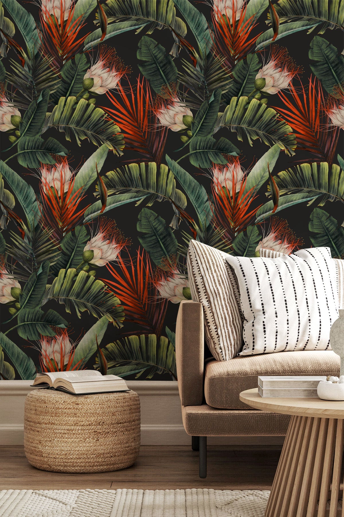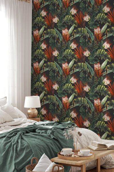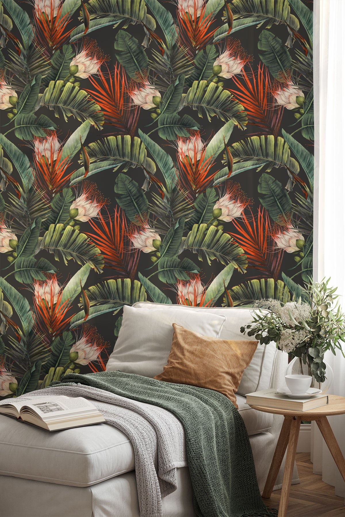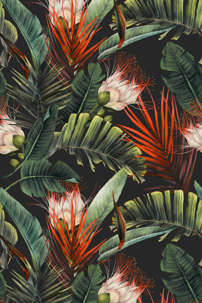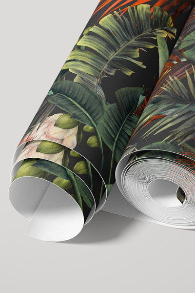 Let's celebrate the tropics with our Nahiku wallpaper. The Nahiku Wallpaper features a mesmerizing arrangement of palm leaves and flowers, creating a dynamic and visually engaging composition. The tropical elements, drawn with precision and finesse, transport you to a serene oasis within the confines of your home. The design effortlessly blends modern style with the timeless charm of watercolor, making it a versatile and elegant addition to any space.