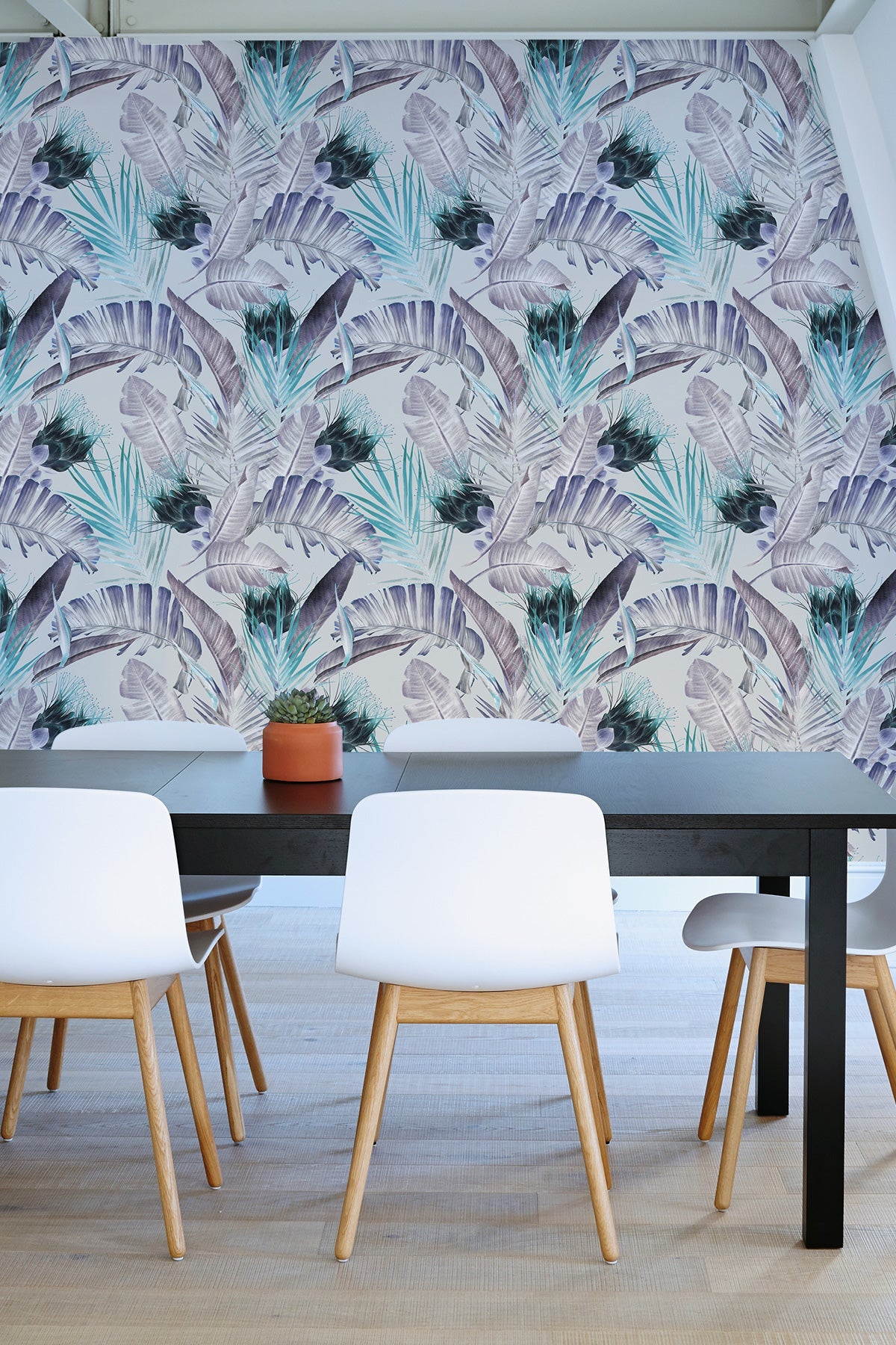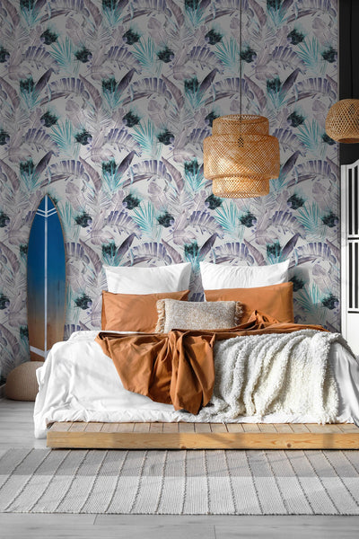 Let's celebrate the tropics with our Nahiku wallpaper. The Nahiku Wallpaper features a mesmerizing arrangement of palm leaves and flowers, creating a dynamic and visually engaging composition. The tropical elements, drawn with precision and finesse, transport you to a serene oasis within the confines of your home. The design effortlessly blends modern style with the timeless charm of watercolor, making it a versatile and elegant addition to any space.