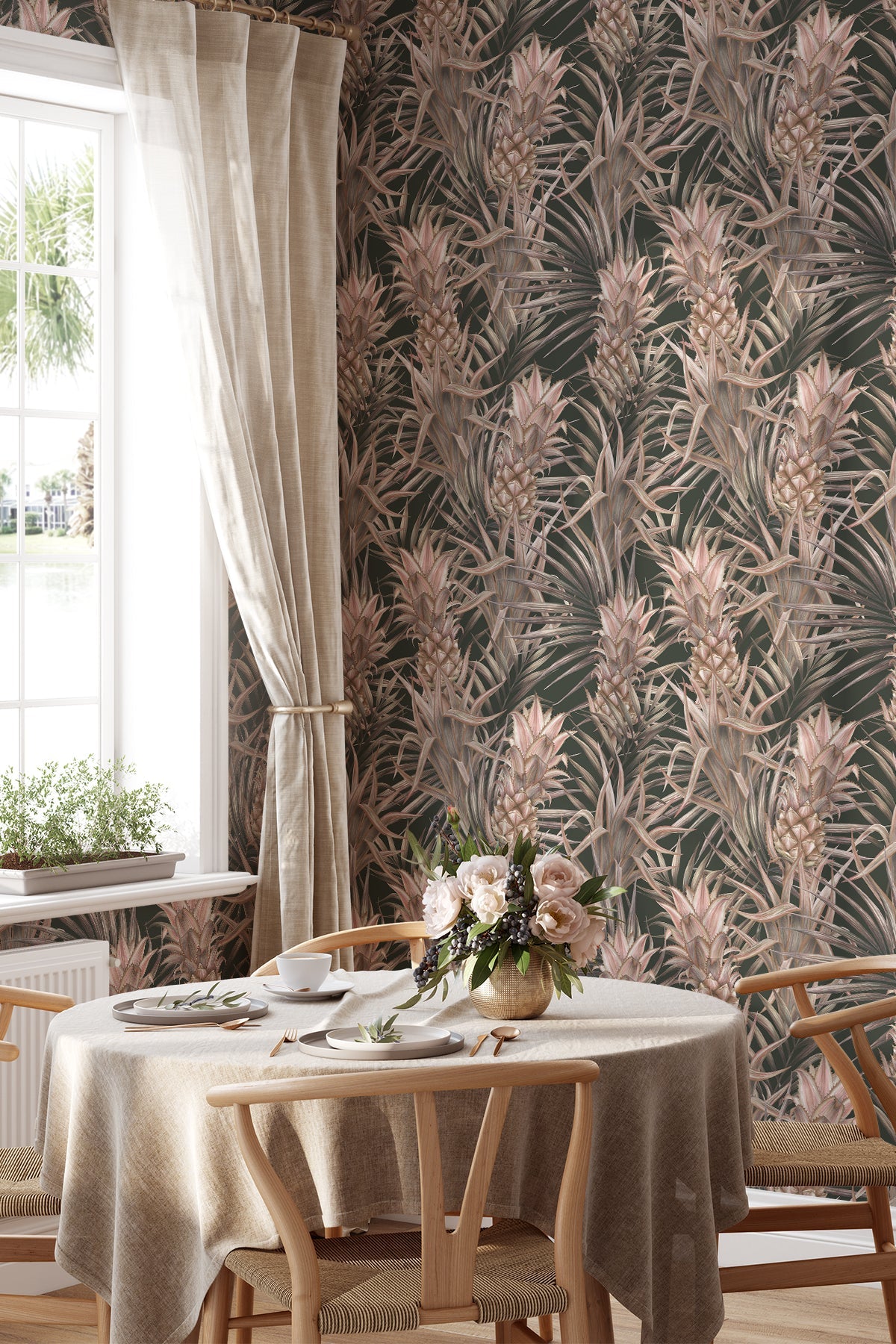 The Oliana Wallpaper is a vivacious explosion of tropical exuberance that transforms your space into a vibrant paradise. This wallpaper is a lively tapestry of hand-drawn pineapples and palm leaves. Its intricate hand drawn details are bursting with color and energy. This wallpaper is a stunning composition that infuses your space with a sense of joy and tropical warmth.