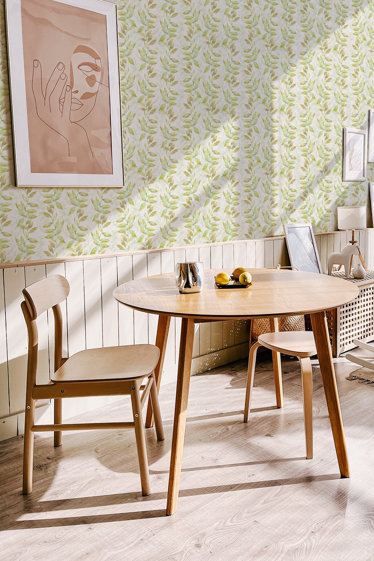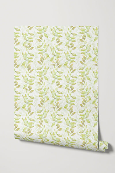 Rail wallpaper is a distinctive design that introduces a dynamic visual rhythm with its pattern of wavy lines adorned with leaves. This wallpaper creates a sense of movement and organic flow, as if a gentle breeze is sweeping through a botanical landscape. The subtle yet impactful design offers a sophisticated backdrop for your walls, providing a unique and artistic take on botanical elements.