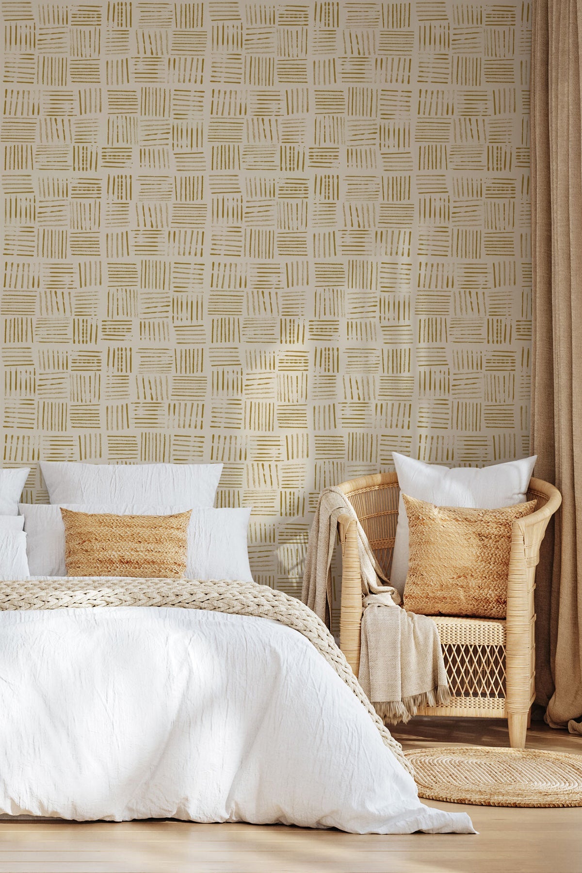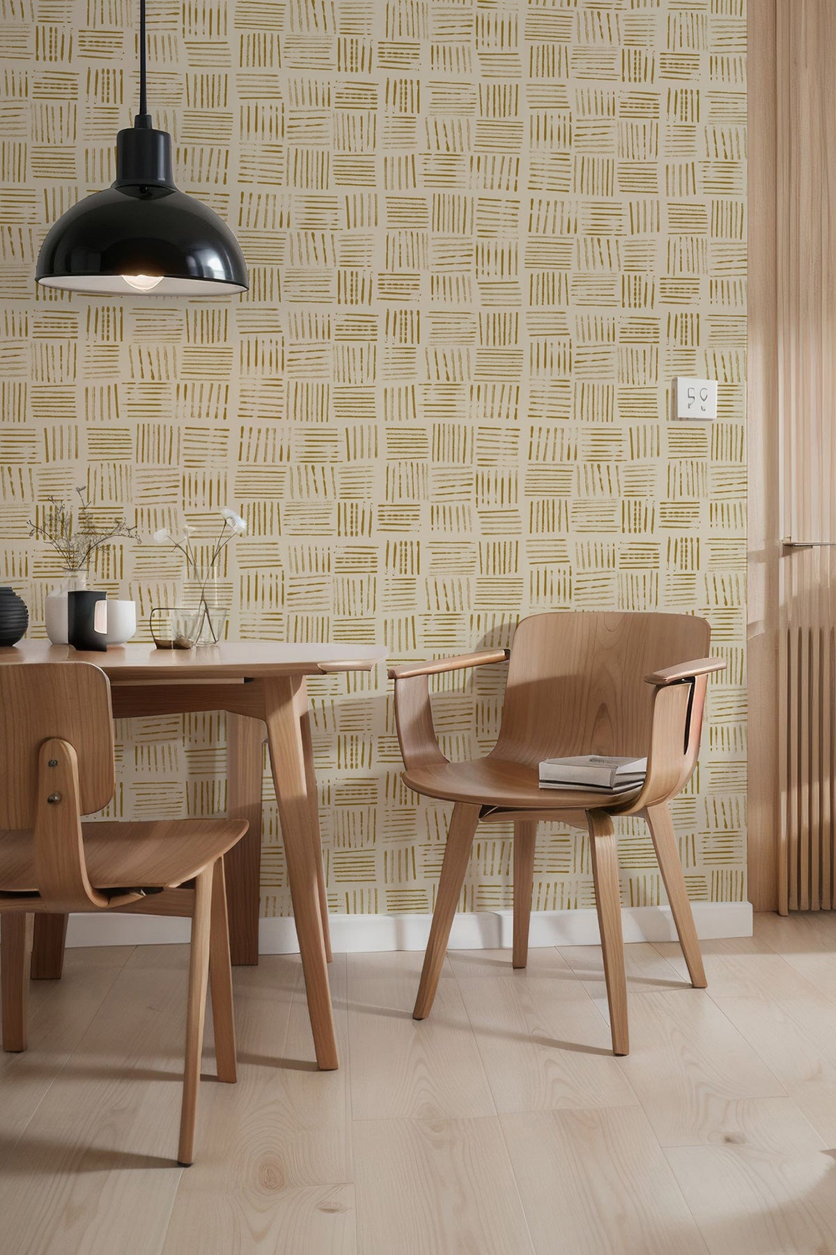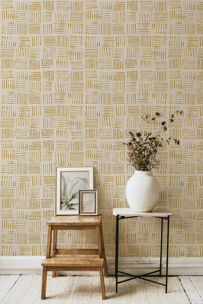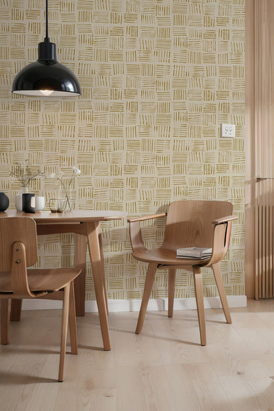 "Strokes Party Light," a fresh, lively wallpaper featuring a grid of squares filled with hand-drawn hatches set against a soft, light background. Each square alternates between horizontal and vertical strokes, adding a playful rhythm and subtle texture to the design. The airy backdrop brightens the hand-drawn lines, making the pattern feel both modern and approachable. "Strokes Party Light" brings a balance of structure and spontaneity to your walls, perfect for adding a gentle yet engaging charm to any space.