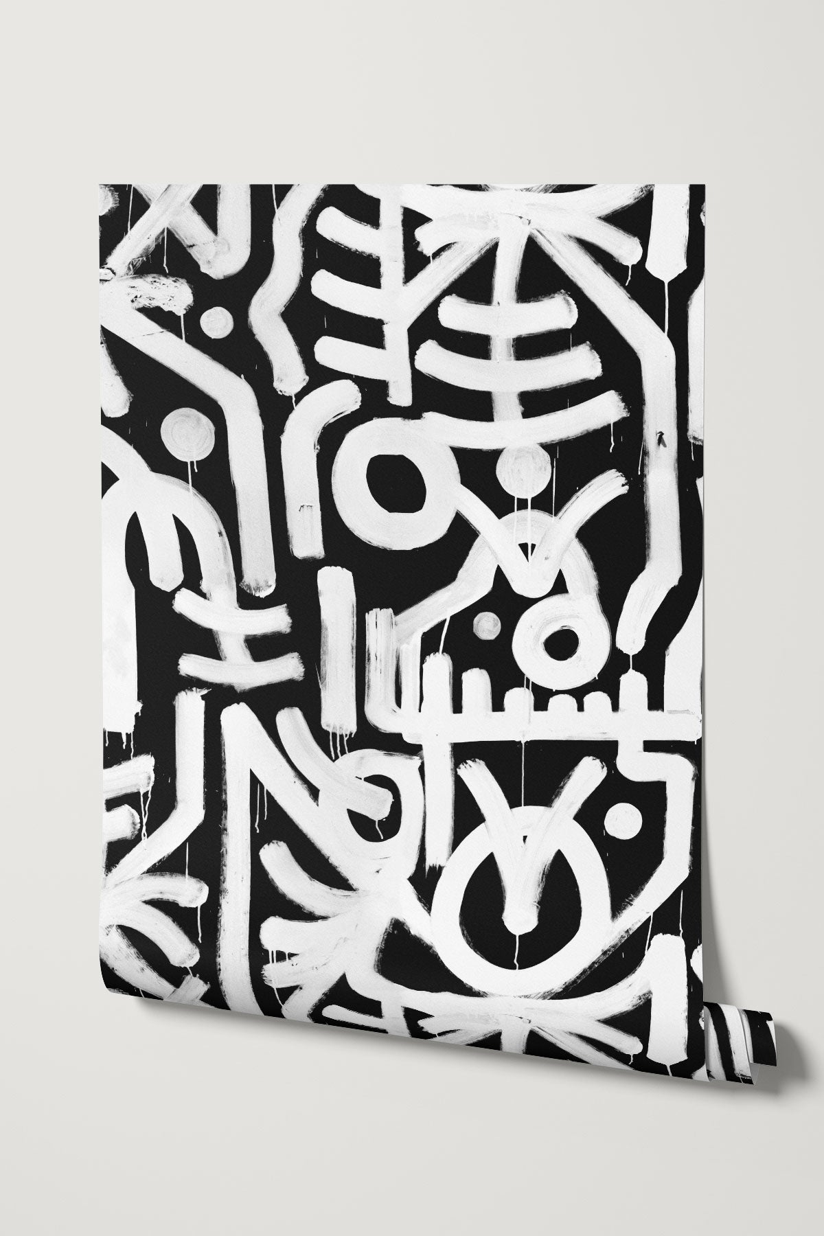 "Tag-Tilly" is a dynamic, street art-inspired wallpaper that brings the energy of urban expression directly to your walls. Bold, graphic strokes swirl and create an abstract maze of shapes and symbols that evoke a sense of movement and chaos. This design captures the raw, untamed nature of street culture, blending a sense of rebellion with artistic expression. "Tag-Tilly" is for those who want their space to be a reflection of creativity, energy, and the ever-evolving world of modern art. Perfect for adding an edgy, avant-garde touch to any room, this pattern transforms your walls into a canvas of bold, graphic storytelling.